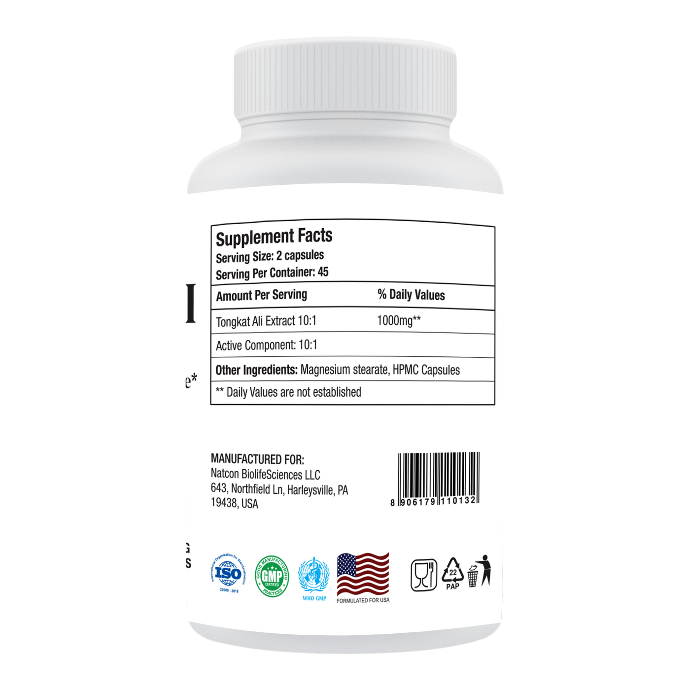 Tongkat Ali Extract 10:1: Supports testosterone levels, boosts energy, enhances libido, and improves stamina.
